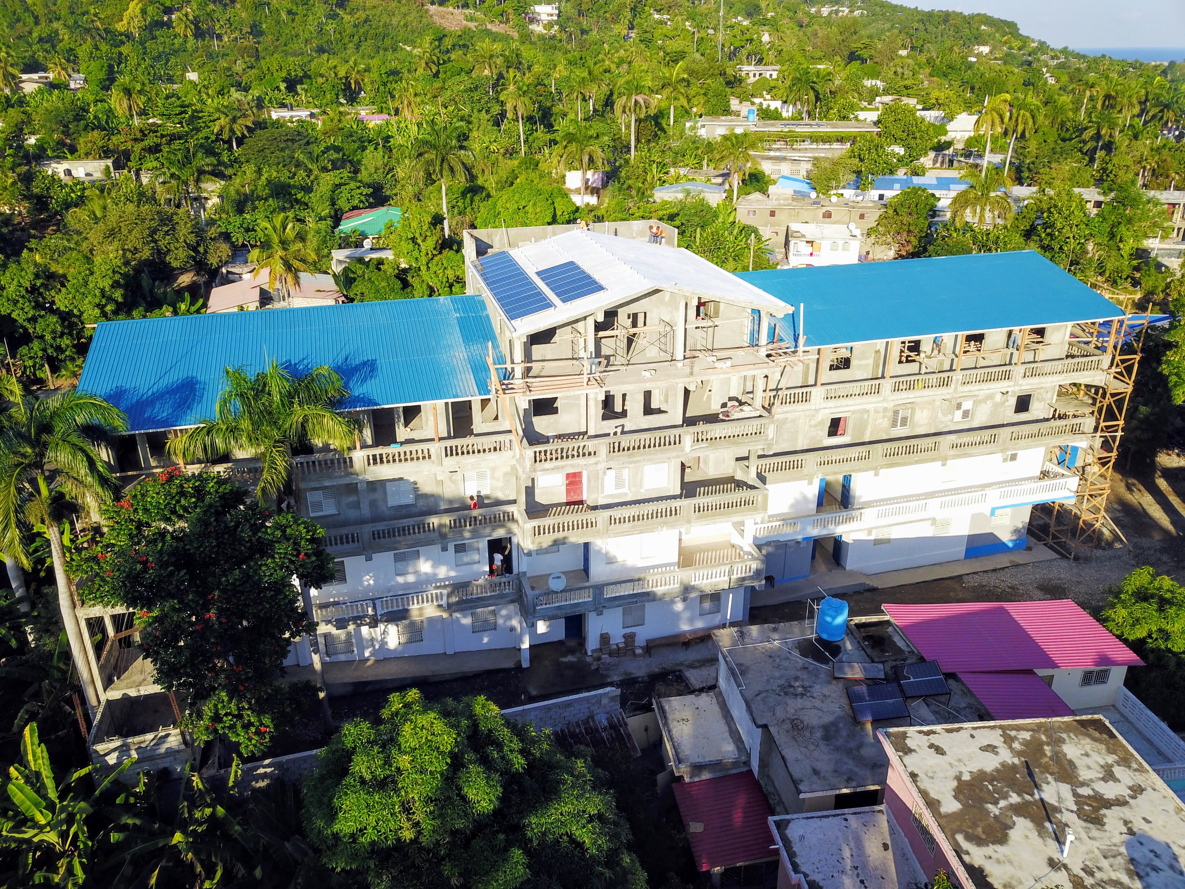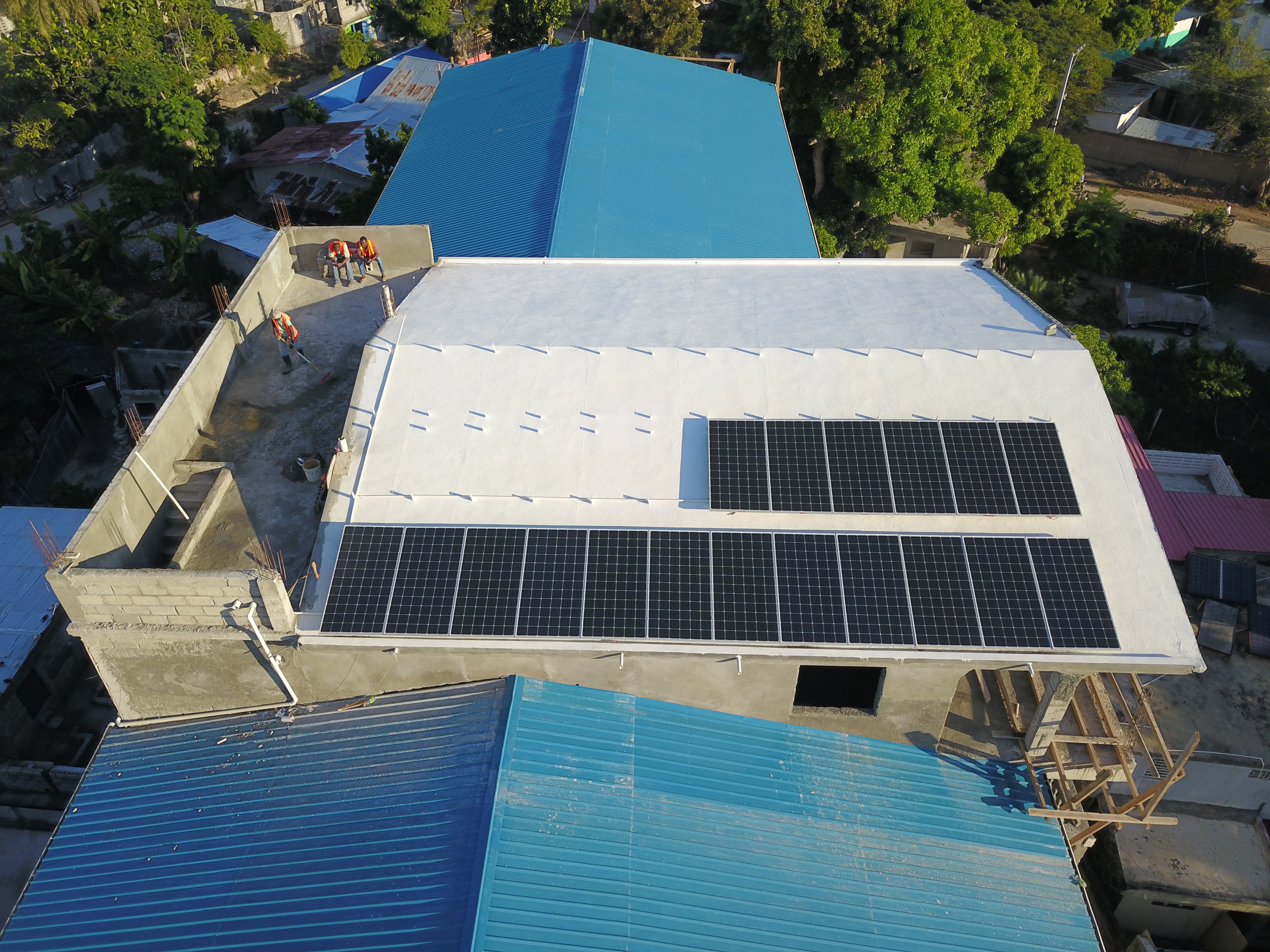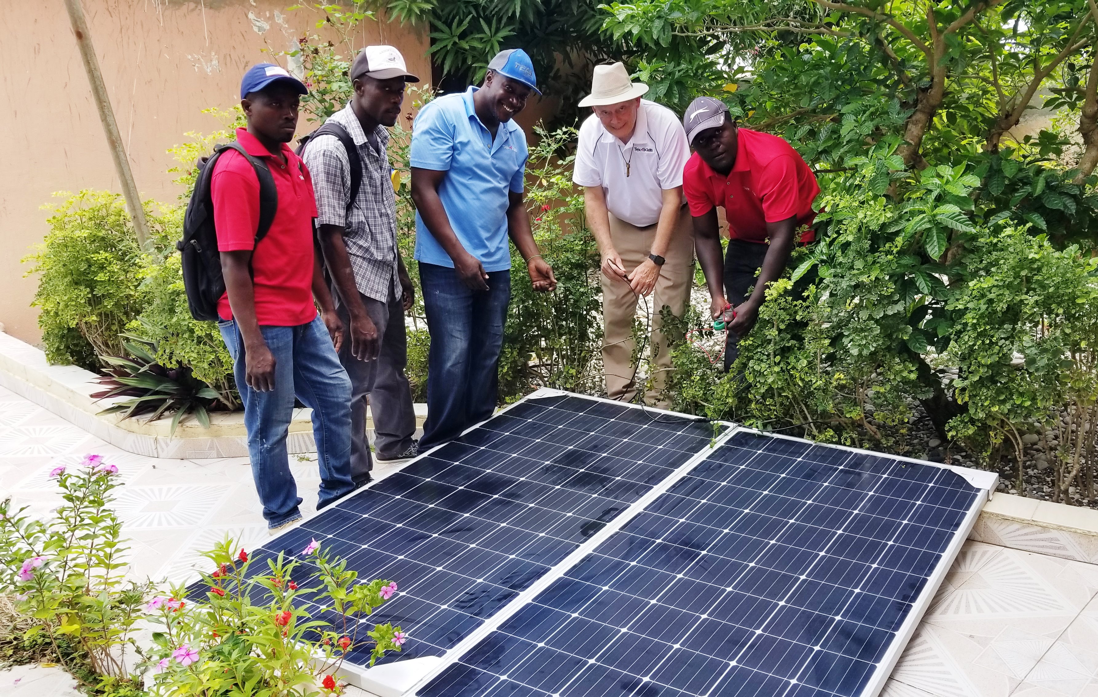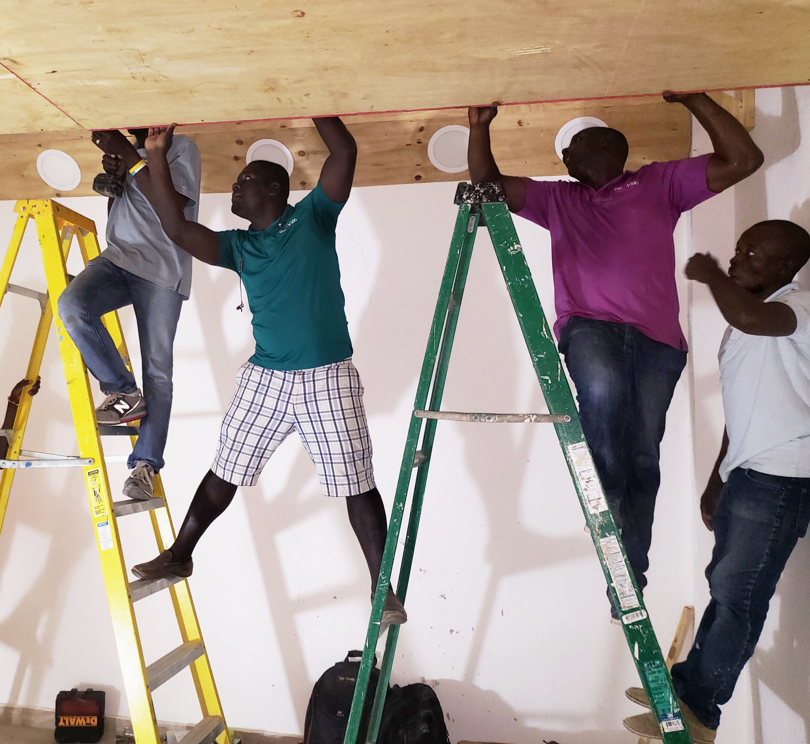 The maintenance team has a variety of responsibilities, including monitoring the water purification and electrical systems in our 7 partner schools. This involves the distribution of thousands of gallons of purified water each day and maintaining the electrical systems with more than 200 batteries and 13 inverters. In addition, they have begun installing solar panels at SFST. With the new building that houses SFST, they have taken on additional work, including classroom setup and maintenance. They set up projectors and screens, wire student tables for laptops and set up cameras and network equipment. They will also be monitoring and maintaining the solar panels as well as the electrical and plumbing systems in our new space.
