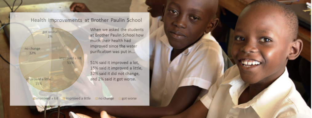 Upon hearing about the successful water purification system Tek4Kids installed at St. Therese Montessori, Brother Paulin's headmaster asked for assistance and a new partnership was born. In addition to clean water, Tek4Kids provides reliable electricity, computer classes and a computer lab for these students. On a recent visit, Tek4Kids founder Gary Boice and volunteer Mike Seibert enjoyed jumping rope with them!